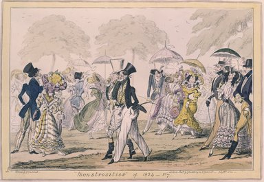 Rowlandson commonly drew aspects of 19th century social life in Europe for the upper, middle, and working classes. According to historian Nicholas Robinson, Rowlandson’s “pre-eminence as a caricaturist is based on the brilliance of his line-and-wash rococo drawings depicting humorous social scenes rather than on his political insight” (Caricature and the Regency Crisis: An Irish perspective, p. 175).
