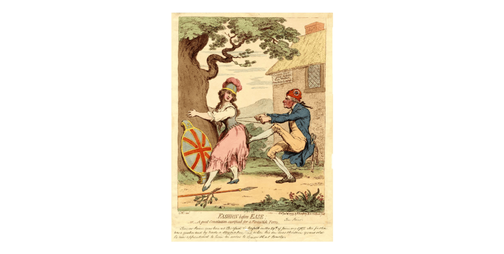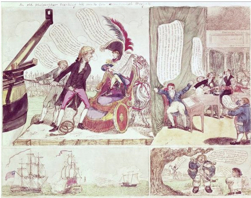 Below are examples of political cartoons published by some of these English artists that depict specific cultural topics that were prevalent for the time period such as dinner parties, high class fashion, industrialization, and political figures like Thomas Paine.