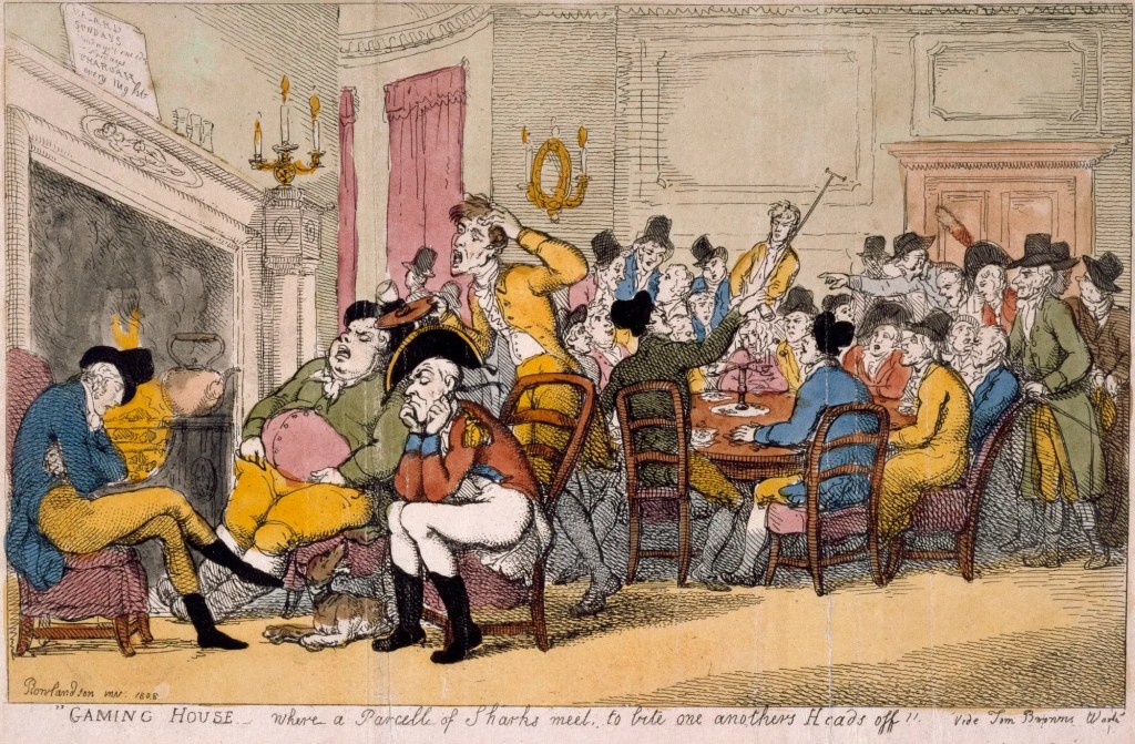This print in particular was for an edition of the 1806 book by James Beresford, titled, The Miseries of Human Life. Beresford wrote the book filled with humorous dialogue between two old men describing the follies and foibles of humankind, which quickly became popular so much so that multiple editions were made by artists who illustrated Beresford’s characters and stories in their own style, like Rowlandson did in the print above. For more information about Beresford’s book and the many illustrations created visit Emmanuel College library’s blog post on artistic editions of The Miseries of Human Life.