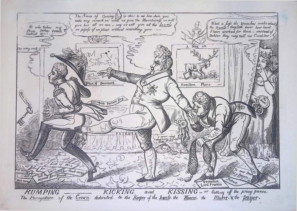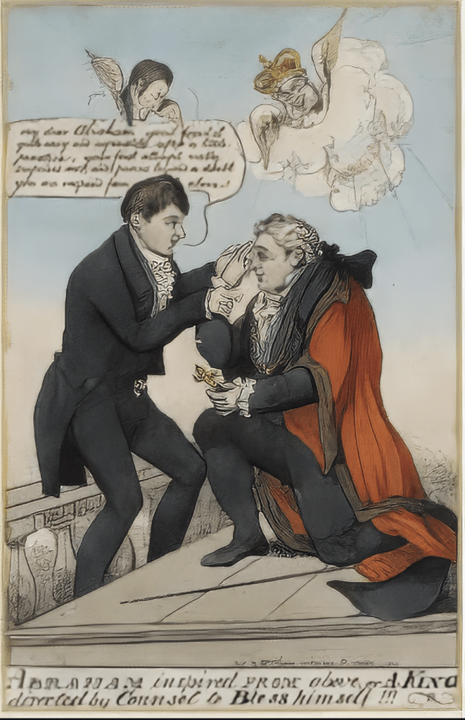 So it was Cumberland’s influence, not King’s, which ultimately drove King George into obstructing the passing of the 1813 emancipation bill. While there are no current sources to confirm McCleary’s personal beliefs about Catholic emancipation, it is clear that within his cartoon above, he is personally making fun of Abraham King.