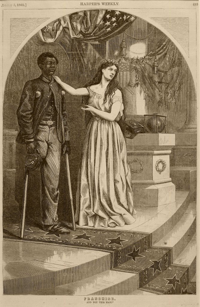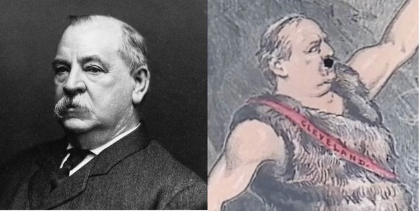 Front and center of the cartoon is Grover Cleveland, the 22nd (1885-1889) and 24th (1893-1897) U.S. President, who was known for his opposition in granting civil rights to African Americans during his two terms.
