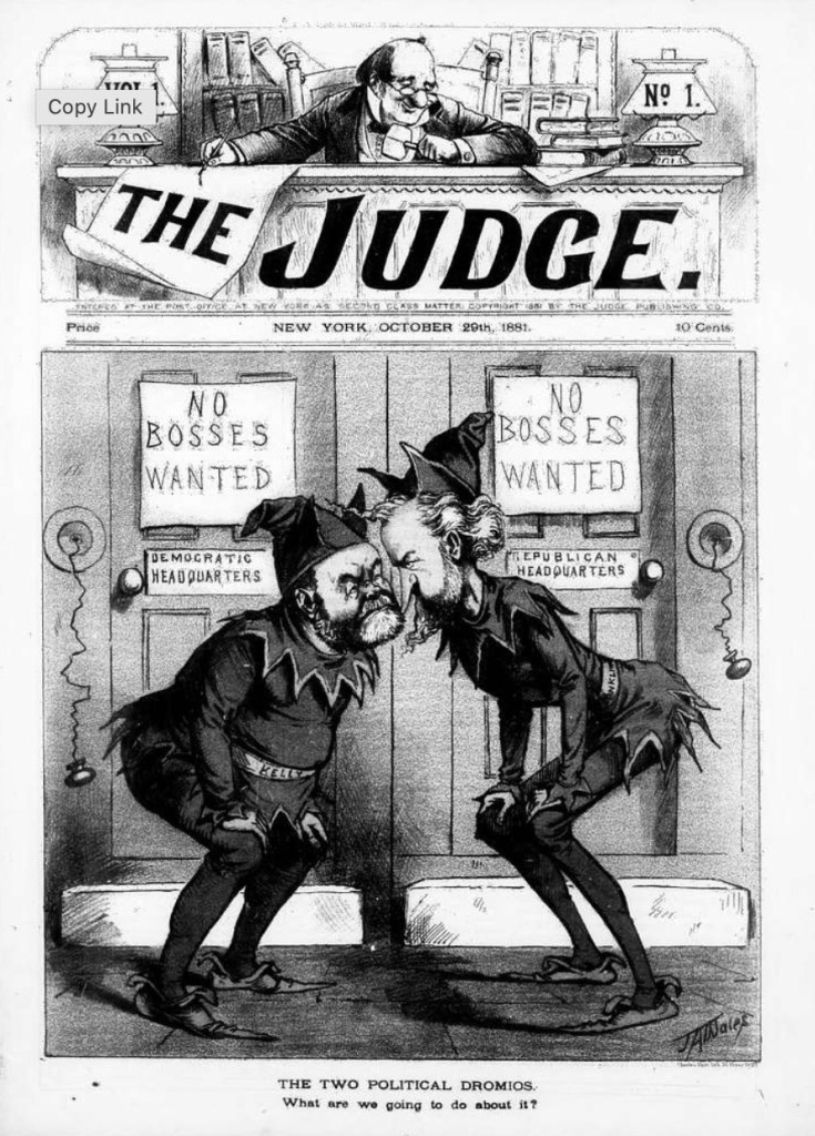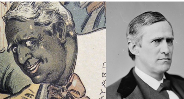 Judge also frequented a stylistic choice that stood out to me, much like Keppler’s anthropomorphism: Bernhard Gillam’s drawings of politicians in blackface.