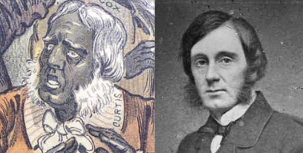 George W. Curtis, a Republican political activist, abolitionist, president of the National Civil Service Reform League, and of the New York Civil Service Reform Association. He became a mugwump who disliked James G. Blaine as a presidential candidate: